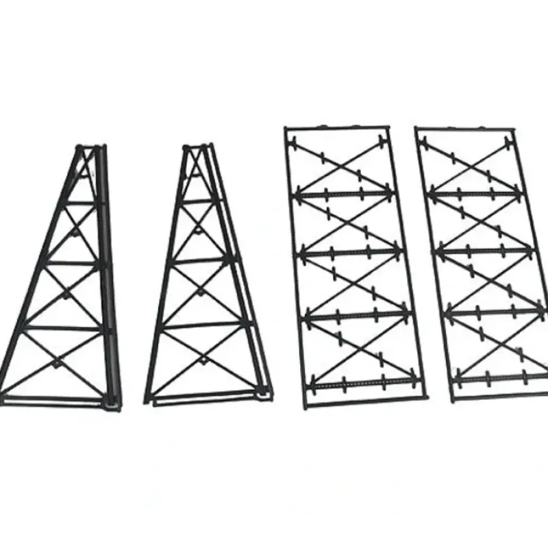 This is a Micro Engineering 75-176 N Scale Tower or Two Bents Tall Steel Viaduct Tower Kit. Tall steel viaducts are some of the most spectacular and interesting types of bridges. They are used by railroads to span wide and/or steep valleys, often replacing wooden trestles. These HO and HOn3 Tall Steel Viaducts are available in three base kits, three length extension kits, a height extension kit which adds a 4th and 5th story, and a tower kit. The various kits allow you to design and build your own custom bridge of any length from one to five stories high, with full towers or bents, and straight or curved. A 10-page instruction sheet with over 35 photos and illustrations is included. These bridges are beautifully detailed and are often the centerpiece structure on modeler’s layouts.