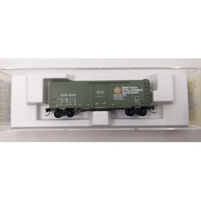 Here is a Micro-Trains 14916-2 Z British Columbia Railway 40′ Single Door Boxcar #8002. This car features plastic construction, plastic trucks, plastic wheels and axles, and knuckle couplers.