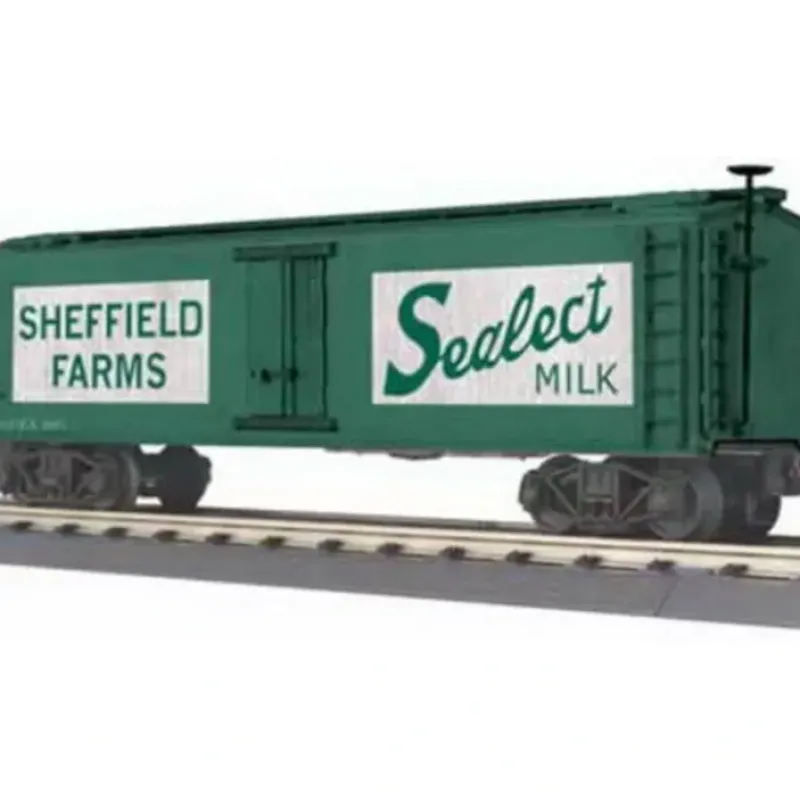 Here is a MTH 30-8631 O Gauge Shefield Farms Die-Cast Reefer Car. Die-Cast Metal Body – Metal Wheels and Axles – Die-Cast 4-Wheel Trucks – Operating Die-Cast Metal Couplers – Decorative Brake Wheels – Separate Metal Handrails – Fast-Angle Wheel Sets – Needle-Point Axles – Unit Measures:11 5/8 x 2 3/16 x 3 3/16 – Operates On O-27 Curves