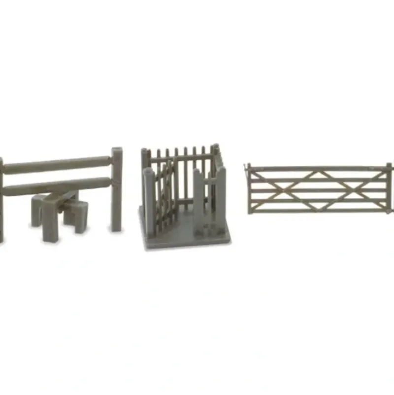 This is a Peco NB-46 N 3 Field Gates, 3 Stiles and 1 Wicket Gate. To complete the fencing system, this pack contains, 3 field gates, 3 stiles and a wicket gate.