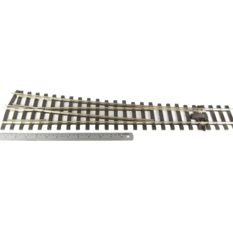 This is a Peco SL-E895 I Medium Radius Right Hand Turnout/Electrofrog. Medium radius turnout. R/H, Electrofrog. These universal Electrofrog turnouts are manufactured to the very best standard and ready to use. They have solid nickel silver rails. Precision machined frog rails and point blades. The turnouts are 612mm long, therefore a crossover fits neatly onto 4ft board. 3.05m radius and 10 degree frog angle. For electric powered locomotives a microswitch PL-33 fits under the tie bar cover.