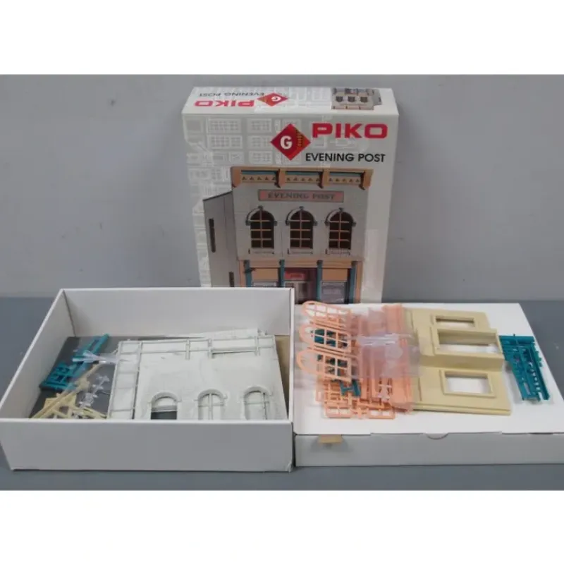Here is a Piko 62206 G Scale Evening Post Building Kit. This building features plastic construction with signage, smokestack, opening windows and doors. This building is approximately 13.5 inches in height.