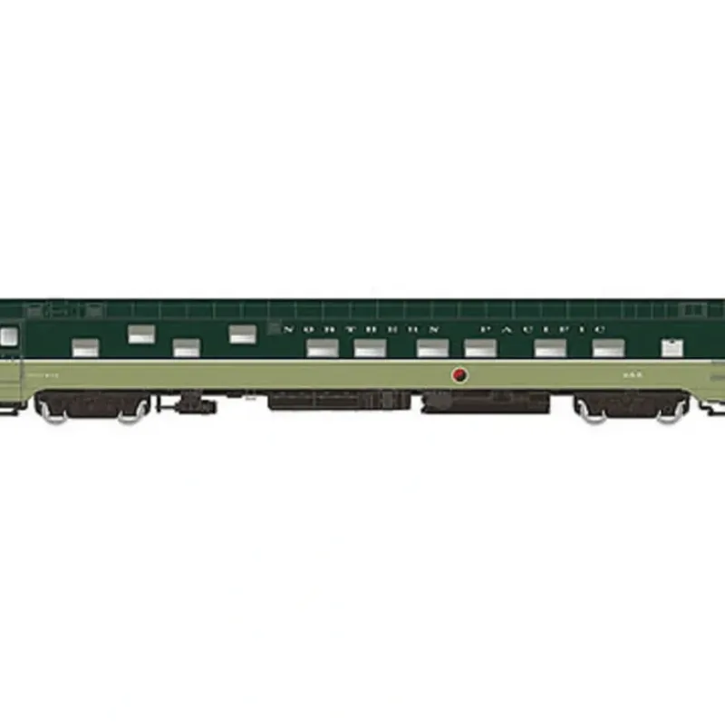This is a Rapido Trains 501151 N Scale Northern Pacific Duplex Sleeper – Ready to Run – Panorama Line #355 (Loewy 2-Tone Green).