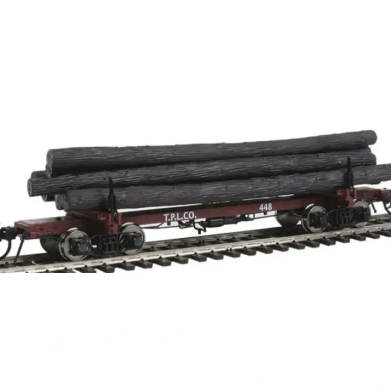 This is a Rivarossi HR6315 HO Pacific Lumber Co. 38′ Skeleton Log Car 2-Pack.
