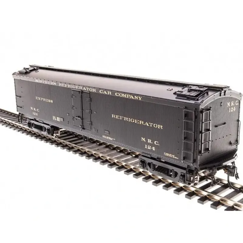 This is a Broadway Limited 1862 HO Scale Northern Refrigerator Car Company NRC General American (GACX) 53’6 Wood Express Reefer 2-Pack – Ready to Run #404, 378 (Pullman Green). Features:Plastic (ABS) body with ABS chassis,Metal wheels and axles milled for Ultra-Smooth Friction-Free movement,PrototypicAlly accurate design, paint, and color schemes,Many separate applied details including grab irons, steps, etc.,Operating Magnetic knuckle couplers,Will operate on Code 70, 83 and 100 rail,Recommended minimum radius: 18 in.
