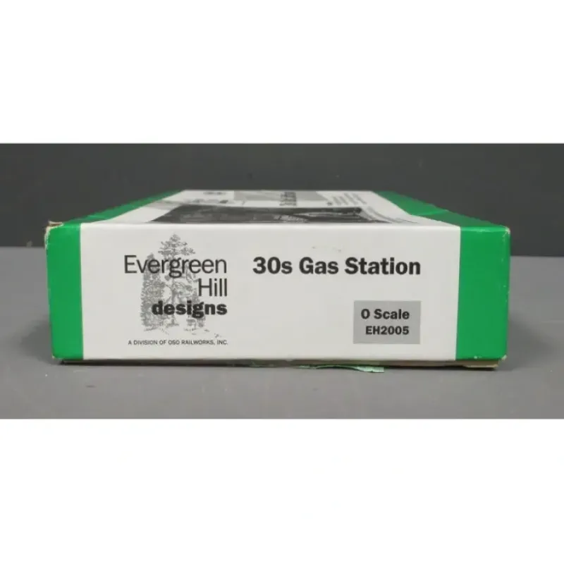 Here is an Evergreen Hill EH2005 O Scale 30s Gas Station Building Kit. Please see pictures for features of this kit.