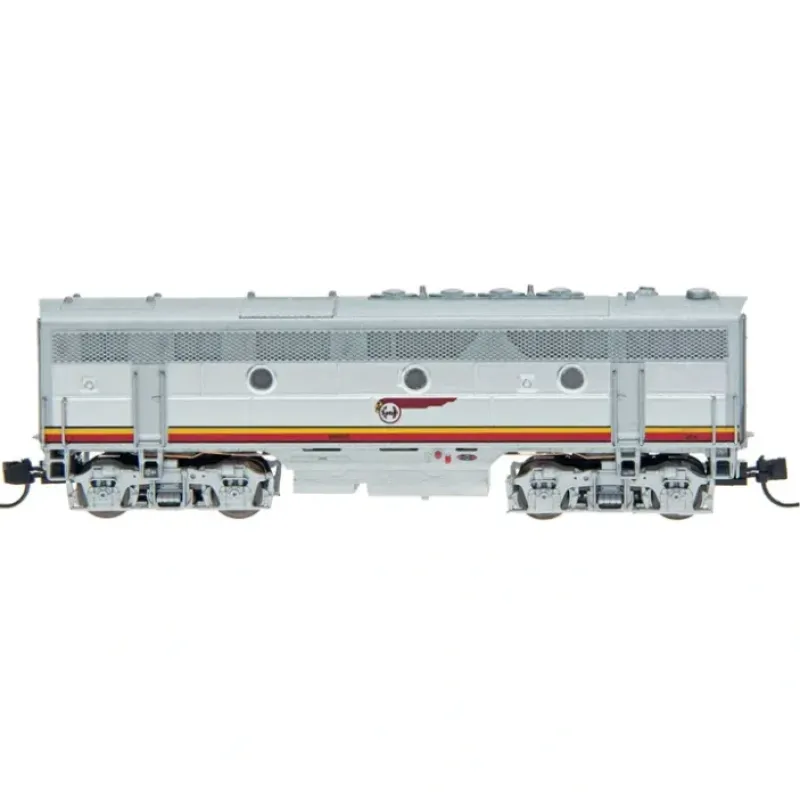 This is an Intermountain Railway Company 85-69805 EMD F3B – Standard DC — Santa Fe. This car is painted silver, red, yellow and black.