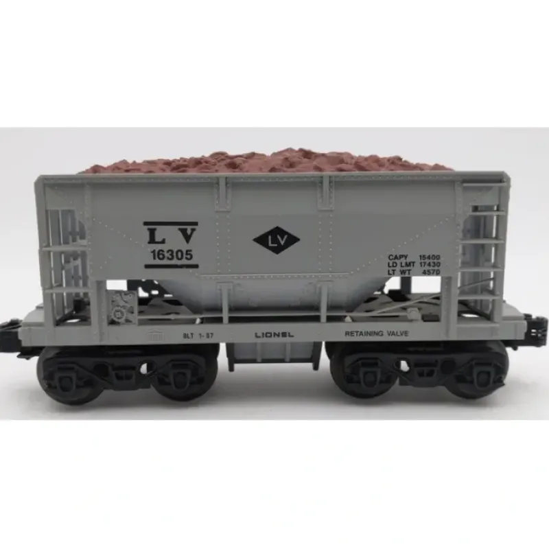 Here is a Lionel 6-16305 Lehigh Valley Ore Car. This car features plastic trucks, operating knuckle couplers, metal wheels and axles.