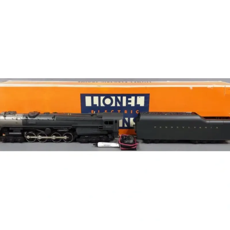 Here is a Lionel 6-18010 O Gauge Pennsylvania 6-8-6 Turbine Steam Locomotive & Tender with RailSounds #6200 from 1991. This scale-sized locomotive is over 30 inches long and operates on 072 diameter track or larger. It features a powerful Pullmor motor, four smoking stacks, Railsounds, transformer controlled reverse, firebox glow, operating headlight and taillight and real coal load. Lionel released the 51702 brass Pennsylvania N-8 caboose to complement this Locomotive in 1991 as well.