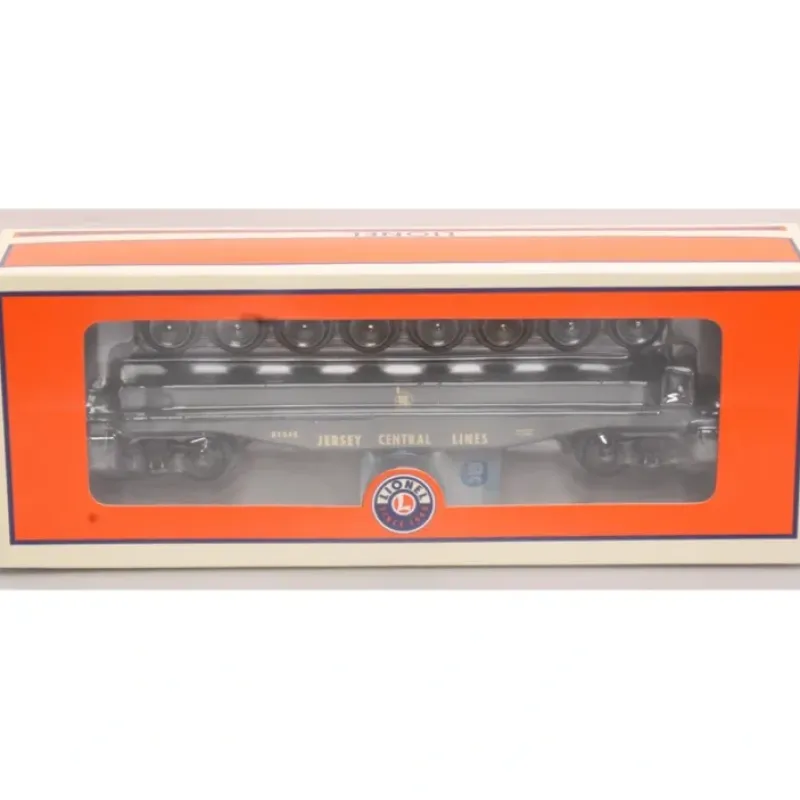 Here is a Lionel 6-81045 O Gauge Central New Jersey Flatcar With Wheel Load . This car features die-cast metal sprung trucks, operating knuckle couplers, metal wheels and axles.