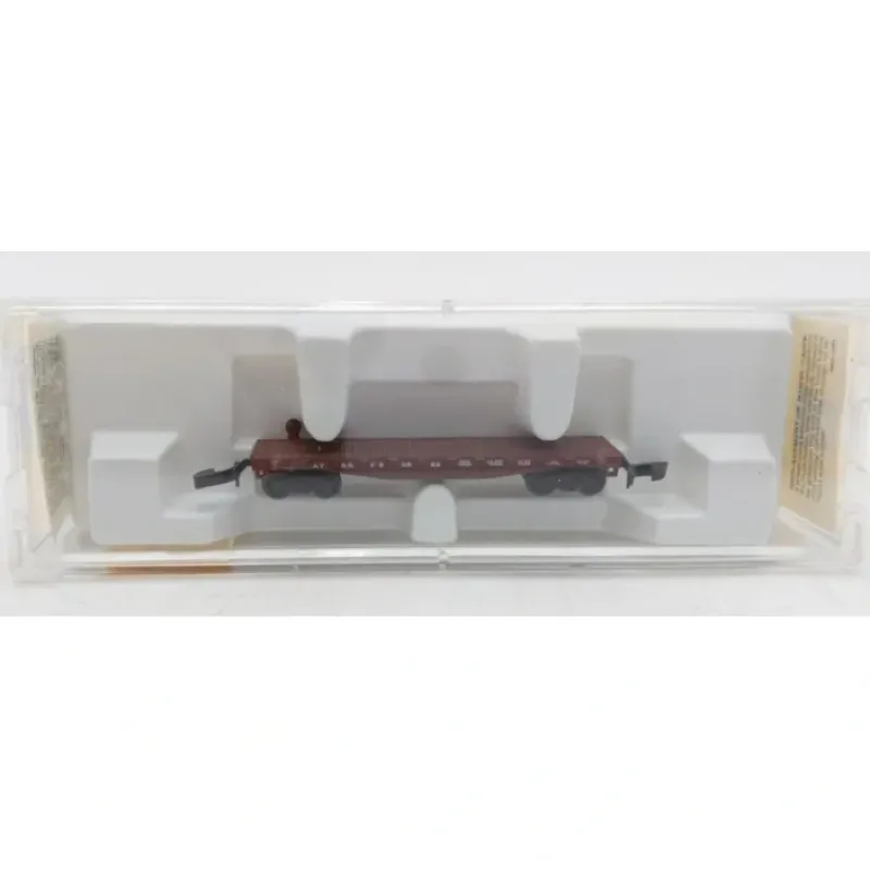 Here is a Micro-Trains 14502 Z Scale ATSF 50″ Flat Car #90823. This car features plastic construction, plastic trucks, micro-trains couplers, plastic wheels and axles.
