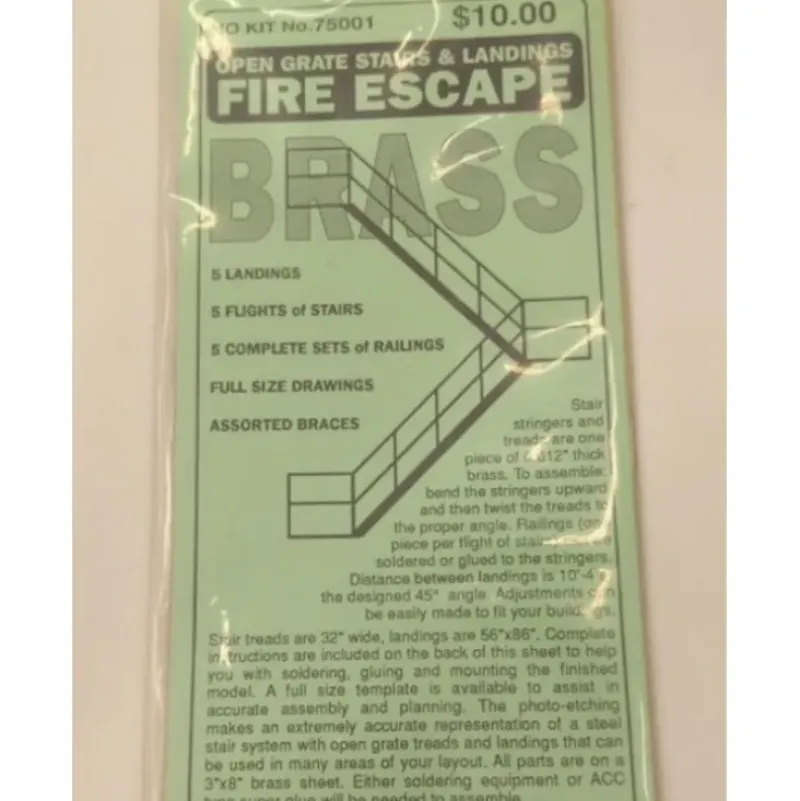 Here is a Open Grate Stairs & Landings Brass Fire Escape to use on your layout. The stair treads are 32 inches wide and landings are 56 inches x 86 inches.
