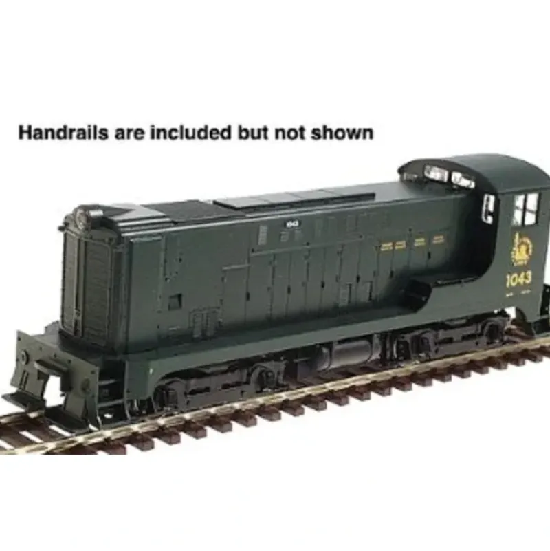 This is an Stewart 4636 HO Scale Central of New Jersey Diesel Baldwin VO-660 Powered w/Stewart Drive — #1043 Phase II. Baldwin’s VO-660 was first introduced in 1940. And while it bore a similar appearance to the VO-100, the VO-660 was approximately three feet shorter in length. The first VO-660 was ordered by the Northern Pacific Railroad, and had an oval grill (not manufactured by Stewart Hobbies). The first unit with the more common, angled front was the EJ&E #271, built in March, 1941. Approximately 130 VO-660’s were produced by Baldwin, with the angled front, when production ended with Kansas City Southern’s #1150 in May, 1946.