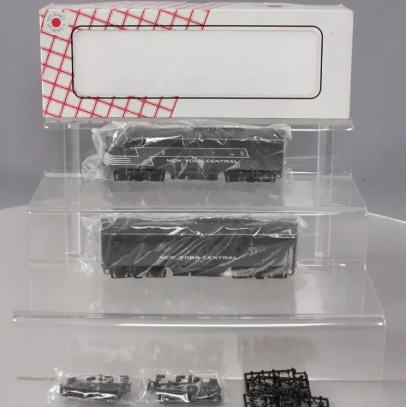 This is an Stewart 5211 HO Scale New York Central Diesel F3 Phase II Early A (Powered) B (Dummy) Set (gray, 3/4 Lightning). These models feature plastic bodies and diecast frames, trucks, motor with flywheels and drive train with NMRA DCC plug. Include horn-hook and Accumate(R) couplers.