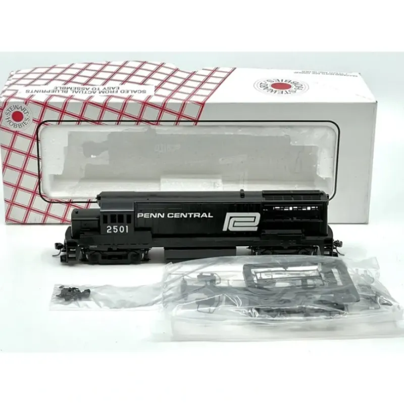 This is an Stewart 7208 HO Scale Penn Central Diesel GE U25B Phase II Powered #2501. These models feature plastic bodies and diecast frames, trucks, motor with flywheels and drive train with NMRA DC plug. Include horn-hook and Accumate(R) couplers.