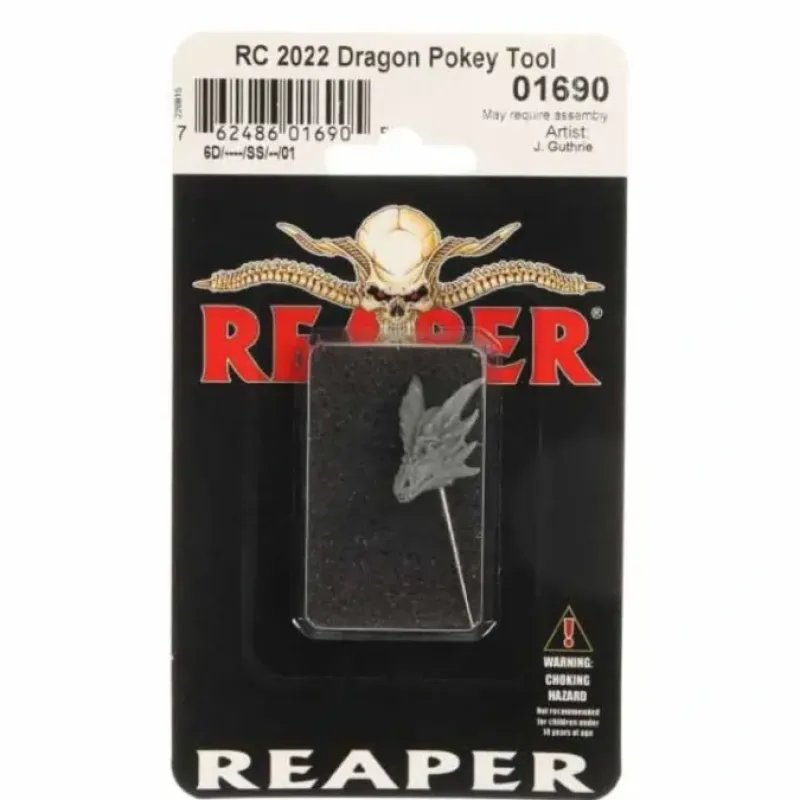 Clogged nozzles no more! The Reaper Paint Dropper Tip Tool with unpainted plastic dragon bust on top is perfect for removing clogs in the nozzles of your Master Series Paints. Simply insert the pointed end into the nozzle and no more clogs! Made of pewter and stainless steel. Approximately 1-7/8″ (58mm) long.