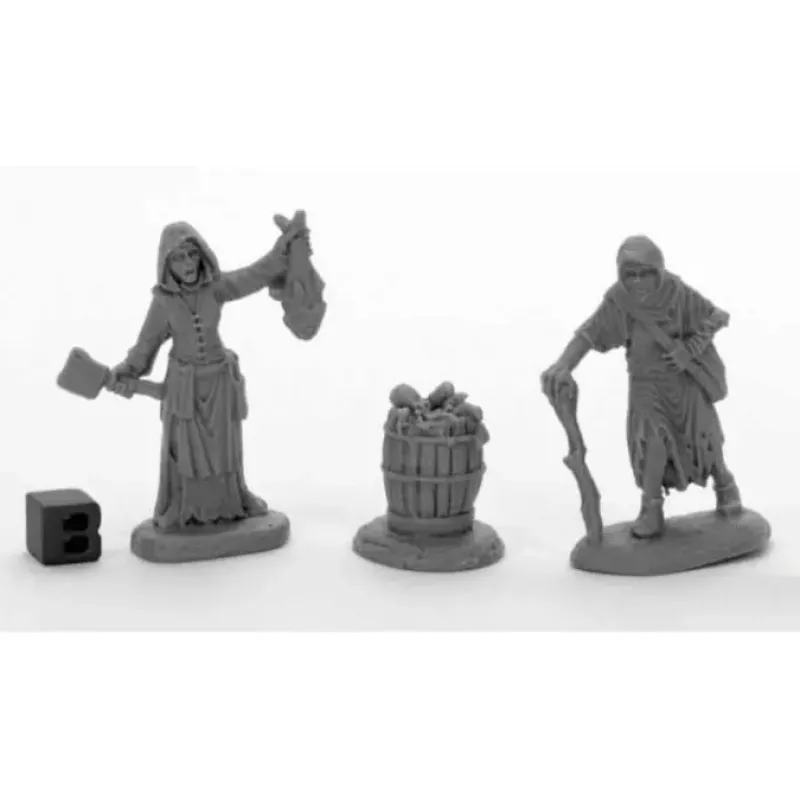 Dreadmere Townsfolk: Fishwife & Crone (2) (and a Barrel full of the Fishwife’s catches!)
