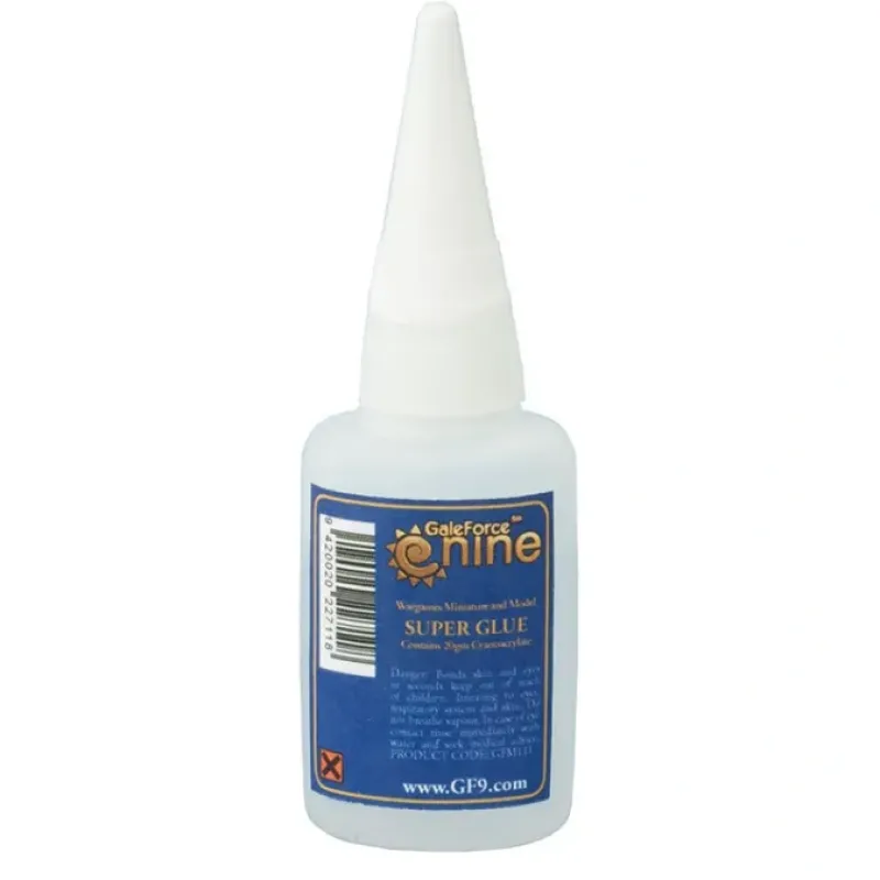 20ml bottle of super glue for use with assembling gaming products and miniatures.