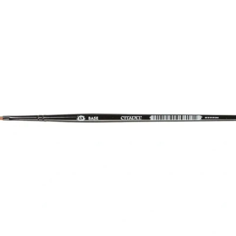 This medium brush (M Base) is ideal for basecoating, features a flat shape with a curved top, and entirely synthetic bristles for extended durability.