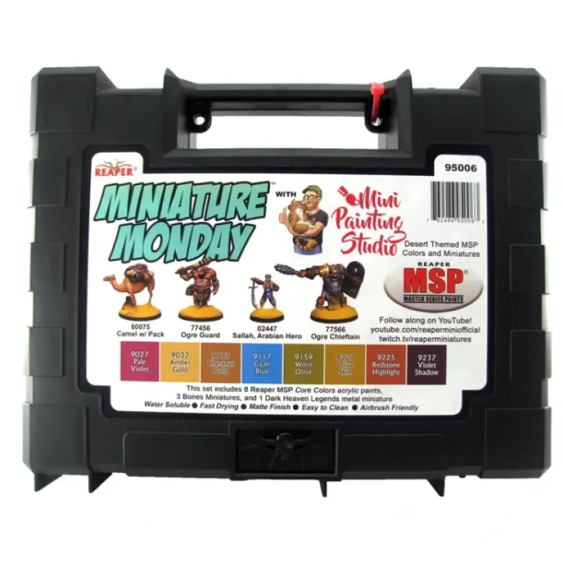 Paint along with Josh Davis of Mini Painting Studio on Twitch with these miniatures and Reaper Master Series Paint colors! Includes 8 Master Series Core Colors paints, 3 Bones Miniatures, and 1 Dark Heaven Legends Metal Miniature.