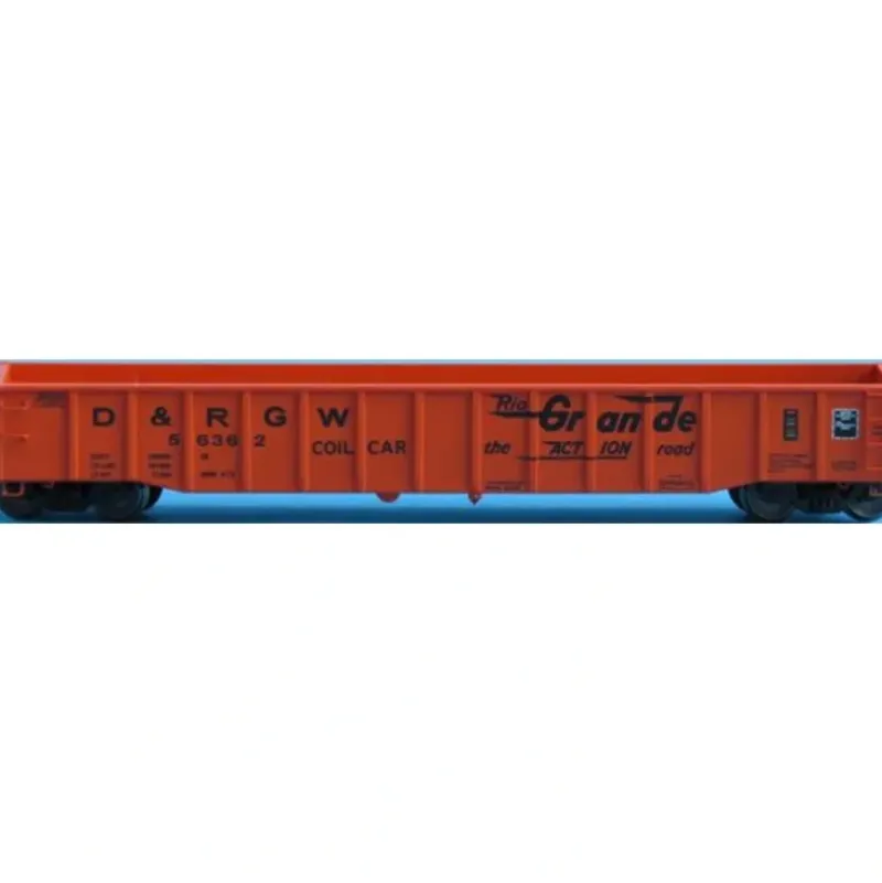 This is a Trainworx Inc 2520110 N Denver & Rio Grande Western Steel Gondola #56362 . Ready to run Thrall 52’6 Steel Gondola painted in orange with black lettering , Action Road and Coil Car slogan.