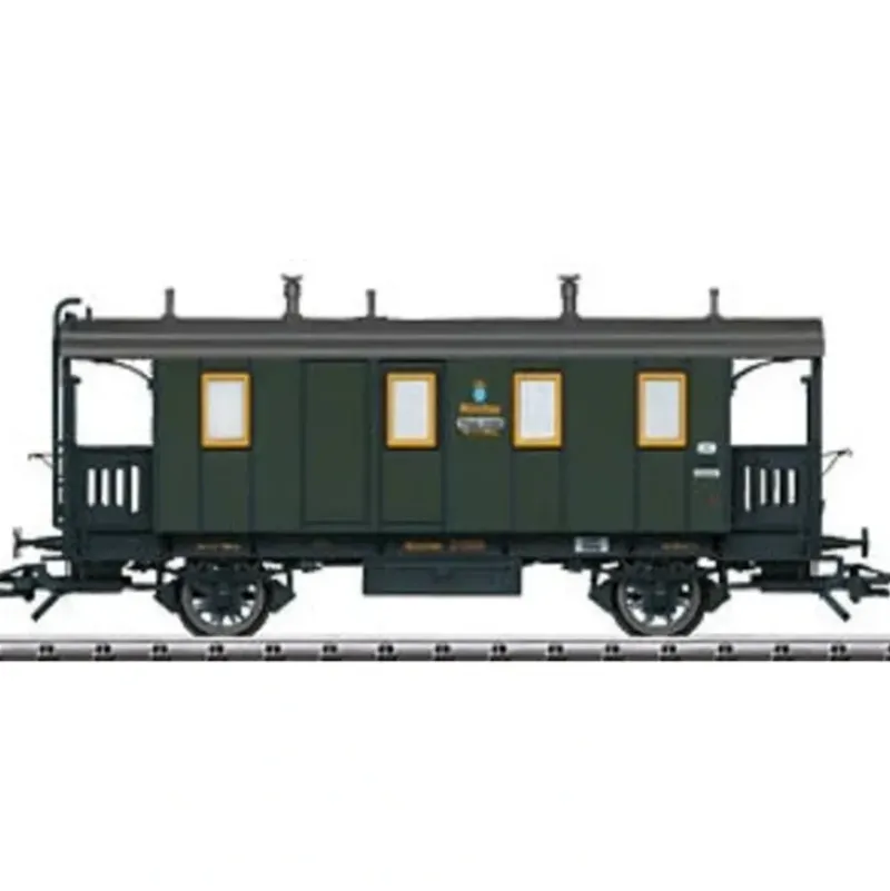 This is a Trix 23228 HO Scale Bauart Branch Line Type PwPost 00 2-Axle Baggage – Ready to Run Royal Bavarian State Railroad K.Bay.Sts.B. (Era I, green).Prototype: Royal Bavarian State Railways (K.Bay.Sts.B.) type PwPost 00 branch line car. Model: The car has gray spoked wheels. It also has a reproduction of the provincial railroad design buffers. The car has a close coupler mechanism. Length over the buffers 11,4 cm / 4-1/2.