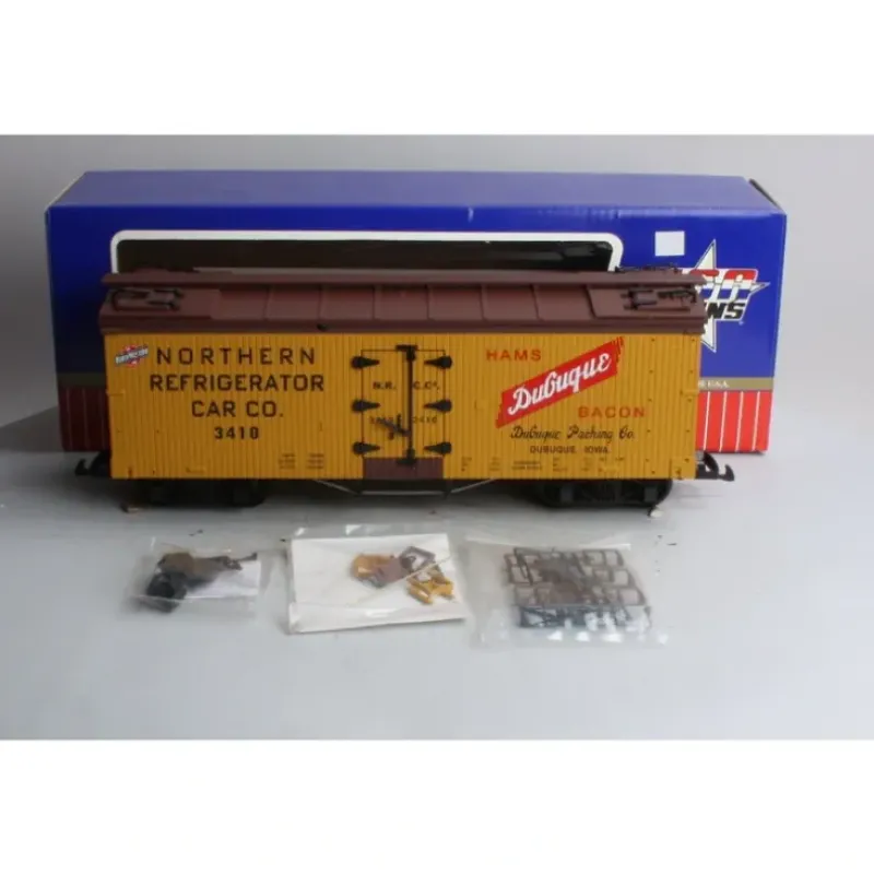 This is a USA Trains 16364 G Northern Refrigerator Car Co. Hams Dubuque Bacon #3410.