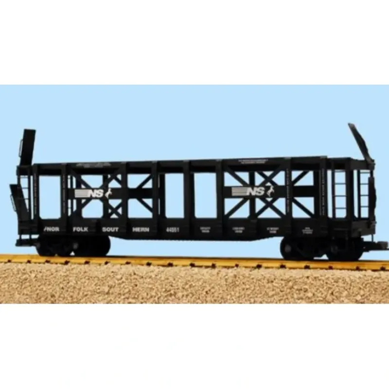 This is a USA Trains 17226 G Norfolk Southern Double-Deck Auto Rack. This features Fold Down Drop Plates to Connect Cars for Auto Unloading, Authentic Railroad Decorations, Excellent Rivet Detail and Die Work, Both Hook/Loop and Knuckle Couplers provided, and Detailed Bettendorf Trucks.
