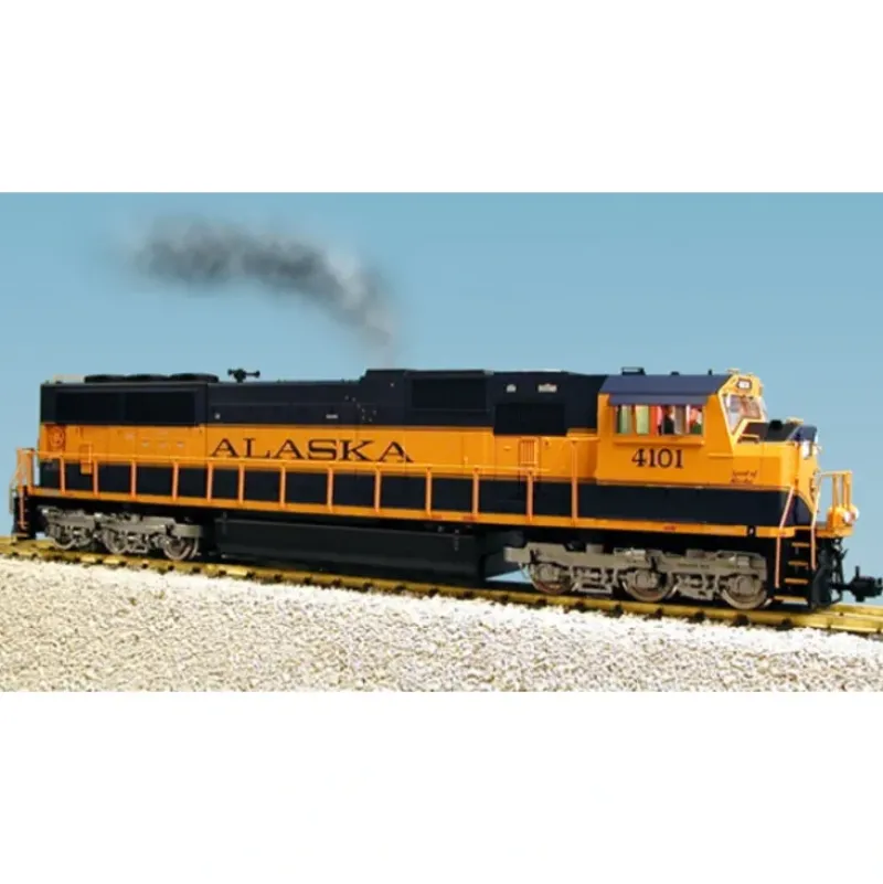 This is a USA Trains 22609 G Alaska Railroad EMD SD70 Mac Powered Diesel Locomotive #4104. Patterned after the powerful locos that keep busy hauling fast freights across the continent, SD70MAC locos from USA Trains bring real railroading to G Scale layouts. These engines feature dual-powered six-wheel trucks, fan-drive smoke exhaust, alternating ditch lights, detailed cab interior with engineer, lighted numberboards and metal handrails. Theyre just the thing for handling freight and passengers (yes, the Alaska’s units haul passenger trains too!) on your garden railroad.