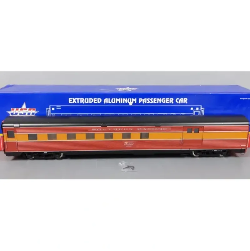 This is a USA Trains 310903 G Southern Pacific Daylight Limited Combine Car. Features: Opening doors, Interior lighting, Full underframe detail, Rubber diaphragms, an aluminum body, die-cast trucks, Metal wheels, and more! Please see my pictures for additional features.