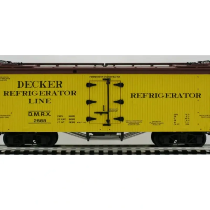 This is a USA Trains 16310 G Decker Refrigerator Line American Series – Woodsided Refrigerator Car #2588. This features Operating Ice Hatches, Separately Molded Handrails, Ladders, & Corner Steps, Brass Brake Shaft, Operating Doors, Detailed Under Body, Both Hook/Loop and Knuckle Couplers Provided, Detailed Archbar Trucks, and Authentic Paint Schemes.