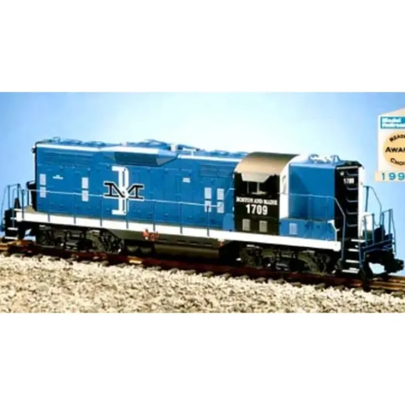 This is a USA Trains 22116 G Boston & Maine EMD GP-9 Diesel Locomotive #1709. This features Dual Motors with PowerTrac Drive System, Dual Operating Smoke Stacks, Detailed Cab Interior With Engineer, Operating Cab Door, Interior Lights, Metal Handrails, Red/Green Directional Marker Lights, Quality Graphics, Available In Multiple Road Numbers for Double-Heading, and Length: 22.67, Width: 3.84, and Height: 5.69.