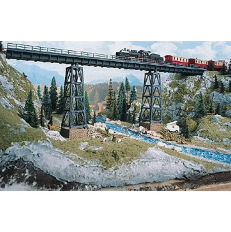 This is a Vollmer Gmbh 2550 HO Scale Halle Viaduct 28-13/16 x 2-13/16 x 9-13/64 72 x 7 x 23cm Designed for ease of construction with maximum detail, this modern steel span makes it easy to cross any obstacle along your line. Kit includes support girders and pilings, along with decking and more.