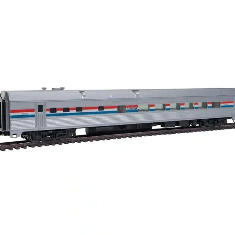 This is a Walthers 910-30151 HO Amtrak 85′ Budd Diner – Ready to Run. Features : Model Passenger Service in Minutes at WalthersMainline Prices!, Completely New Tooling from Rails to Roof!, Based on Streamlined Cars Used by Many Roads, Four Authentic Car Types in 10 Schemes, Operates on 18 Radius Curves, Correct Prototype 85′ Length, Tinted Window Glass, Fully Assembled, Ready to Enjoy, Rugged Construction for Years of Service, Detailed Body, Full Interior, Correct 36 Turned Metal Wheelsets, Proto MAX(TM) Metal Knuckle Couplers, Add-On LED Lighting and Exterior Detail Sets Available Separately.
