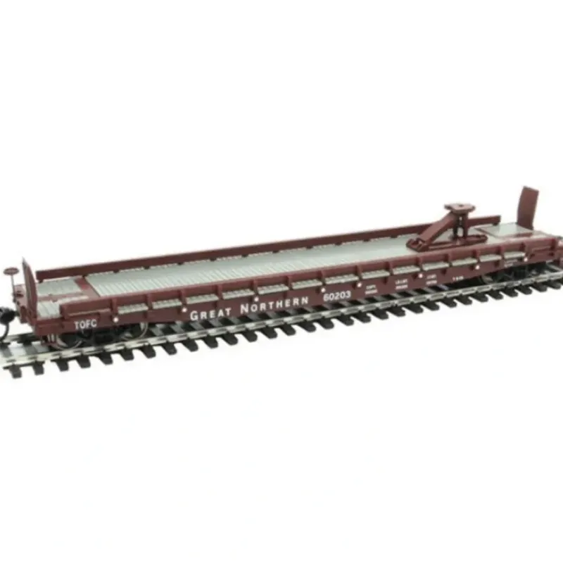 This is a Walthers 910-5115 HO Great Northern #60203 – 53′ GSC Piggyback Service Flatcar. Limited Edition – One Time Run of These Roadnumbers, Used for Piggyback Service 1955-80s, Carried 32′, 35′ and 40′ Trailers, Factory-Installed Original Style Trailer Hitch, Rub Rails & Bridge Plates, Detailed Body & Deck, Hidden Weight for Great Looks & Performance, Correct 33 Turned-Metal Wheelsets, and Proto MAX(TM) Metal Knuckle Couplers.