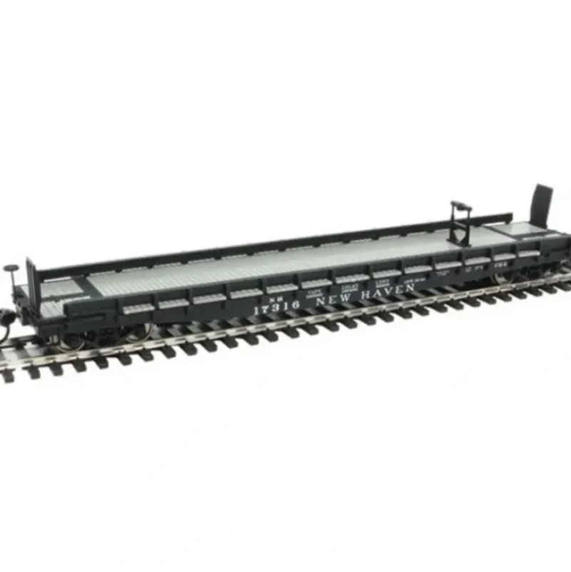 This is a Walthers 910-5117 HO New Haven #17316 – 53′ GSC Piggyback Service Flatcar. Limited Edition – One Time Run of These Roadnumbers, Used for Piggyback Service 1955-80s, Carried 32′, 35′ and 40′ Trailers, Factory-Installed Original Style Trailer Hitch, Rub Rails & Bridge Plates, Detailed Body & Deck, Hidden Weight for Great Looks & Performance, Correct 33 Turned-Metal Wheelsets, and Proto MAX(TM) Metal Knuckle Couplers.