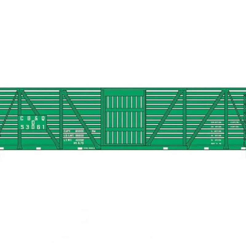 This is a WalthersMainline 910-54501 HO Scale 40′ Stock Car w/Dreadnaught Ends 6-Pack – Ready to Run Chicago, Burlington & Quincy (green, white) * Limited Edition — One Time Run of These Roadnumbers! * Common Prototype Used in Hauling Livestock for Decades * Fully Assembled * Correct 33 Turned-Metal Wheelsets * Proto MAX(TM) Metal Knuckle Couplers * Perfect for use with Cornerstone Stock Yard 933-3047 & Champion Packing Plant 933-3048 (each sold separately)