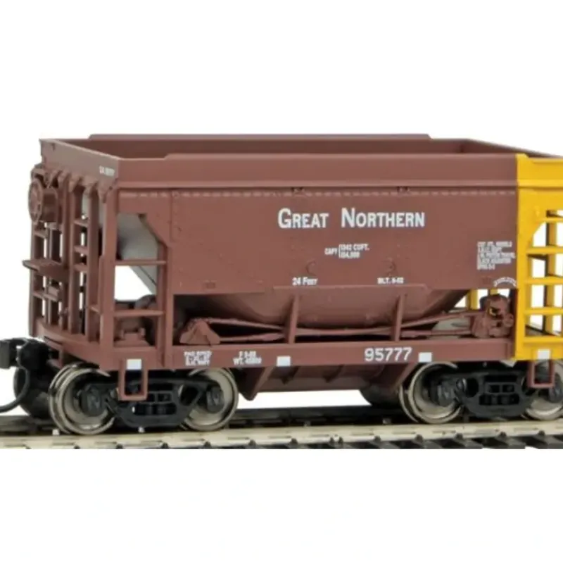 This is a Walthers 910-58062 HO Great Northern #95592, 95625, 95766, 95777 – 24′ Minnesota Taconite Ore. Limited Edition – One Time Run of These Roadnumbers, 12 Car Numbers Available for Each Roadname – 4 Per Set, Correct 5′ Wheelbase Trucks, Based on Cars Rebuilt for Taconite Pellet Loading with Side Extensions, In Service 1960s to Present, Also Hauled Flux Stone & Iron Ore, Completely Assembled, Ready to Use, Die Cast Underframe for Excellent Tracking, Correct 33 Turned-Metal Wheelsets, and Proto MAX(TM) Metal Knuckle Couplers on End Cars; Dummy Knuckle Couplers on Intermediate Cars.