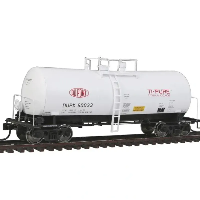 This is a Walthers 920-100120 HO Scale 40′ UTLX 16,000-Gallon Funnel Flow Tank Car – Ready To Run DuPont DUPX #80033 * Limited Edition – One Time Run of These Roadnumbers! * Used for Food Products, Chemicals, Slurries & More from 1960s to Present * Etched Metal Walkways & Platforms * Factory-Installed Grab Irons * Brake Train Pipe & Brake Rigging Underbody Detail * Road-Specific Placement of Manways & Safety Valves * Ultra-Smooth Rolling Metal Axles & 36 Wheelsets * Proto MAX(TM) Metal Knuckle Couplers Developed by the Union Tank Car Company during the 1960s, Funnel-Flow cars carry all kinds of liquids and slurries (mixtures of water and other materials) that can be unloaded by gravity. The car name says it all, as the entire tank is slightly lower in the middle. Like a funnel, the contents flow towards the lowest point for faster, more complete unloading. Funnel-Flow tank cars come in several lengths to accommodate liquids of various densities, with the heaviest moving in shorter cars. As such, they serve a wide range of both producing and consuming industries, carrying all types of food products, chemicals and slurries (mixtures of material and water). Many are also fitted with internal heater coils so that loads such as asphalt and corn syrup that thicken when cool can be reheated for more complete unloading. 920-100101 AFPX #413321 920-100102 AFPX #413330 920-100103 Cargill #4551 920-100104 Cargill #4541 920-100105 OMYA #24613 920-100106 OMYA #24006 920-100107 Procor #15154 920-100108 Procor #15163