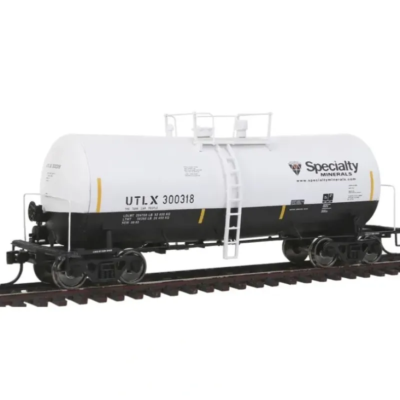 This is a Walthers 920-100127 HO Scale 40′ UTLX 16,000-Gallon Funnel Flow Tank Car – Ready To Run Specialty Minerals #300318 * Limited Edition – One Time Run of These Roadnumbers! * Used for Food Products, Chemicals, Slurries & More from 1960s to Present * Etched Metal Walkways & Platforms * Factory-Installed Grab Irons * Brake Train Pipe & Brake Rigging Underbody Detail * Road-Specific Placement of Manways & Safety Valves * Ultra-Smooth Rolling Metal Axles & 36 Wheelsets * Proto MAX(TM) Metal Knuckle Couplers Developed by the Union Tank Car Company during the 1960s, Funnel-Flow cars carry all kinds of liquids and slurries (mixtures of water and other materials) that can be unloaded by gravity. The car name says it all, as the entire tank is slightly lower in the middle. Like a funnel, the contents flow towards the lowest point for faster, more complete unloading. Funnel-Flow tank cars come in several lengths to accommodate liquids of various densities, with the heaviest moving in shorter cars. As such, they serve a wide range of both producing and consuming industries, carrying all types of food products, chemicals and slurries (mixtures of material and water). Many are also fitted with internal heater coils so that loads such as asphalt and corn syrup that thicken when cool can be reheated for more complete unloading. 920-100101 AFPX #413321 920-100102 AFPX #413330 920-100103 Cargill #4551 920-100104 Cargill #4541 920-100105 OMYA #24613 920-100106 OMYA #24006 920-100107 Procor #15154 920-100108 Procor #15163
