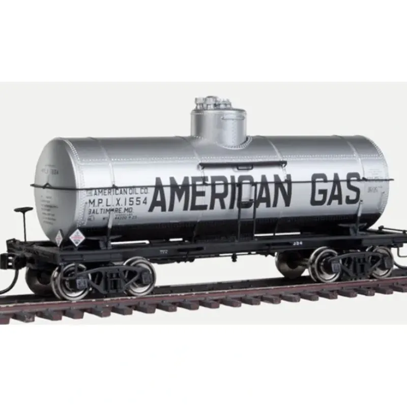 This is a Walthers 920-100502 HO American Gas Type 21 ACF 10,000-Gallon Tank Car – Ready To Run #1554. Features: Limited Edition – One Time Run of These Roadnumbers!, Thousands of Cars with this Common Design Served North America for 4 Decades, Used to Haul Gasoline and other Petroleum Products, Factory-Installed Grab Irons, Detailed Underbody and Air Brake Gear, Ultra-Smooth Rolling Metal Axles & 33 Wheelsets, Proto MAX(TM) Metal Knuckle Couplers, 50-Ton Spring Plankless Trucks, AB Brake Gear & Details.