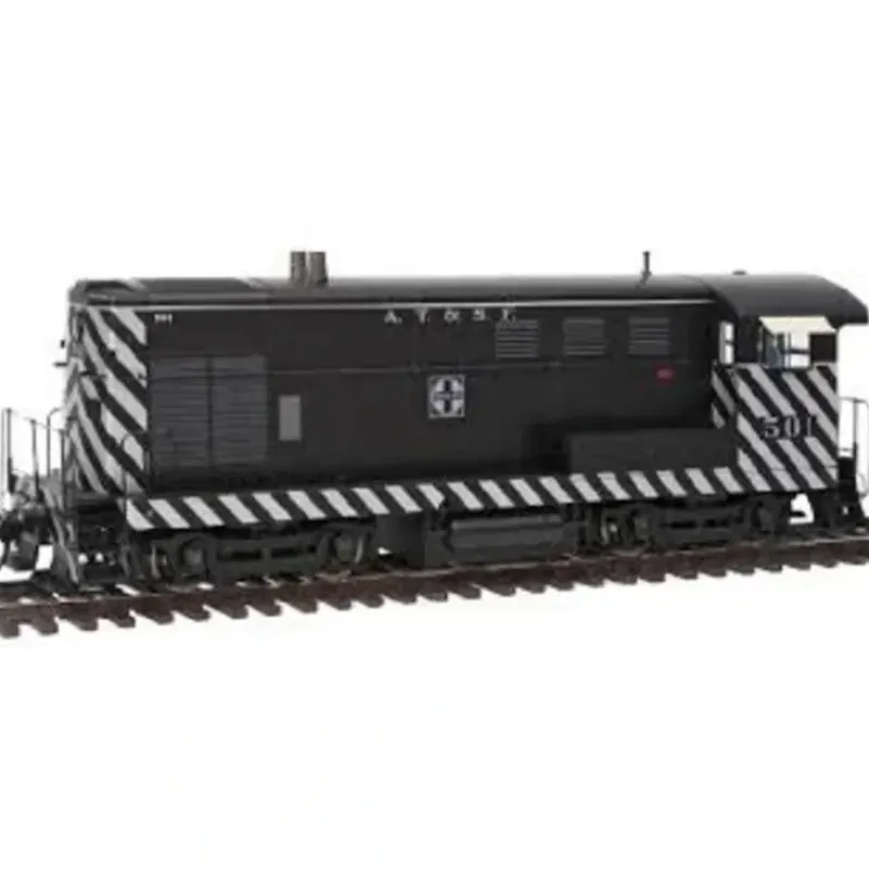 This is a Walthers 920-40824 HO scale Fairbanks-Morse H10-44 – Tsunami(R) Sound & DCC Santa Fe #501 (Zebra Stripe, black, silver) * Limited Edition — One Time Run of These Roadnumbers! * Road-Specific Detailing * Available with Tsunami(R) Sound for DCC & Standard DC Layouts * All-Wheel Drive & Electrical Pickup * Machined Brass Flywheels * Constant & Directional Headlights * Heavy Die Cast Chassis * 5-Pole Skew-Wound Motor * RP-25 Metal Wheels * Proto MAX(TM) Magnetic Knuckle Couplers Based on locos from about 1951 to 1957 with: * 3 Stanchion Sill * Exhaust Stack Extensions * Nail Type Radio Antenna * Canvas Sunshades * Cab Armrests * Cab Roof Circular Vent * Leslie A-125 Air Horn