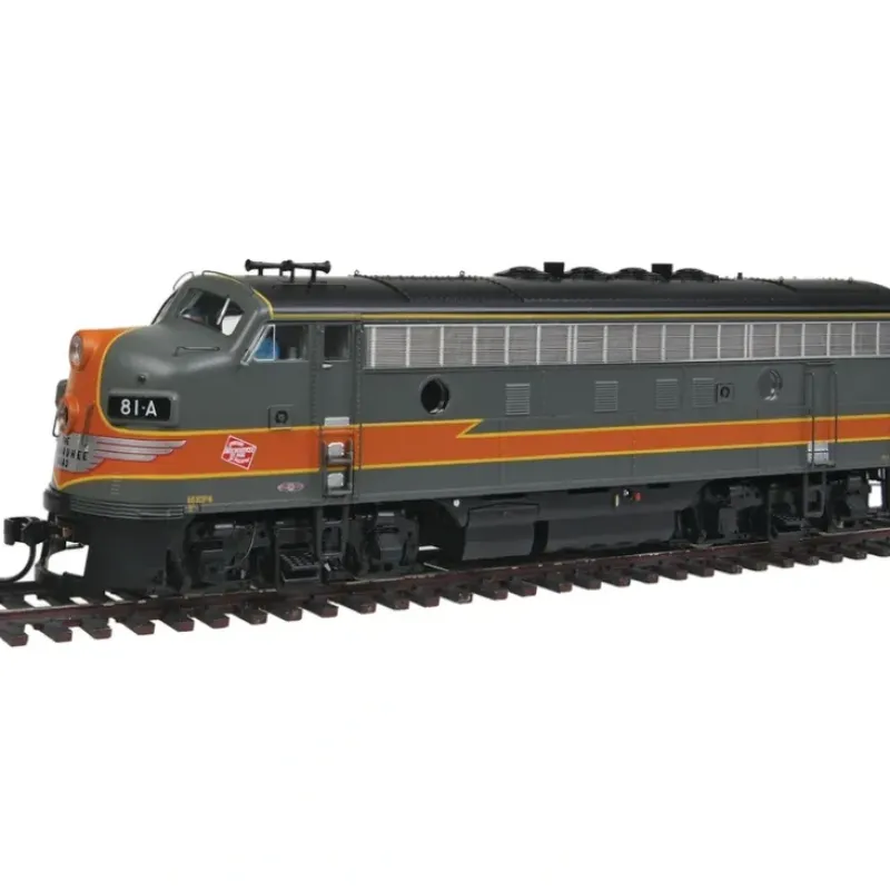 This is a WalthersProto 920-41280 HO Scale EMD F3A – Tsunami(R) Sound & DCC Milwaukee Road #81A (gray, orange, Lightning Bolt). Features: – Road-Specific Details Including: Dual Slit Dynamic Brake Wire Screens Dual Leslie A-200 Horns Nose Door Mounted Headlight Passenger Style Pilot Full Fuel Tank Skirts Knob-Style Sand Hatch Covers Horizontal Type Stainless Steel Side Grilles Nose Ladder Stand Offs & Eyebrow Grabs – Limited Edition — One Time Run of These Roadnumbers! – Based on Group #80 Phase 4 F3s – New Lightning Bolt Scheme as used from 1949 through Mid-50s – Soundtraxx(R) Tsunami(R) Sound for DCC & DC Layouts – Authentic Bulldog Nose – Lighted Numberboards – 14:1 Helical Gears for Smooth, Quiet Performance – 5-Pole Skew-Wound High-Torque High-Efficiency Can Motor – Machined-Brass Flywheels – Low Speed Under 3 Scale MPH – LED Constant & Directional Headlights – Proto MAX(TM) Metal Knuckle Couplers