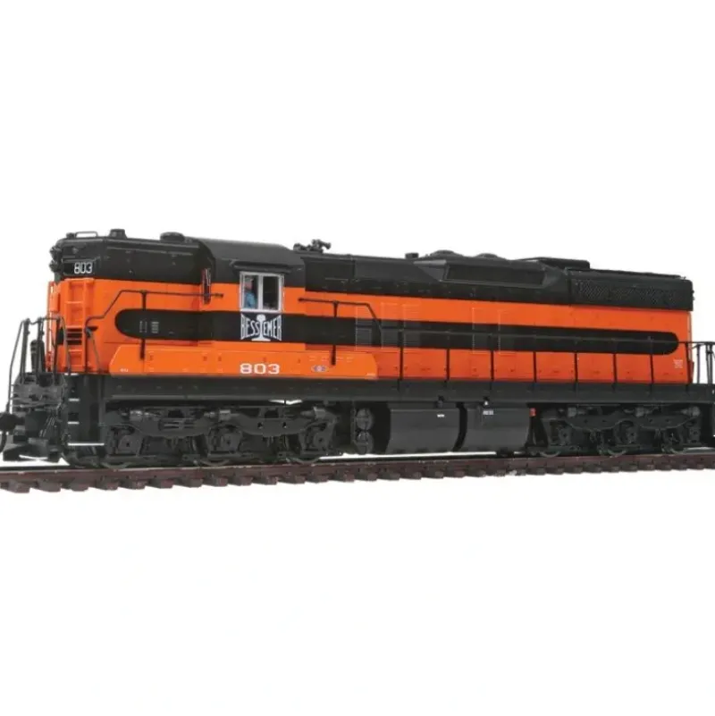 This is Walthers 41903 EMD SD7 Loco B&LE #803. WalthersProto EMD SD7, Tsunami Sound & DCC. Bessemer & Lake Erie #803 (orange, black). Designed for branch lines, EMD’s Special Duty series debuted in 1952 with the SD7, featuring the new three-axle Flexi-Coil truck with its powered center axle. EMD’s new truck not only spread the weight, but the extra traction motors provided more starting power. Responding to demand for a more powerful version, EMD replaced the SD7 with the SD9 in 1954, equipped with the new 567C prime mover that delivered 1,750 horsepower. Except for placement of the class lights, the SD9 looked almost the same as the SD7. By the time production ended in 1959, 515 SD9s were in service on over a dozen railroads. Some are still going strong after 50+ years of service!