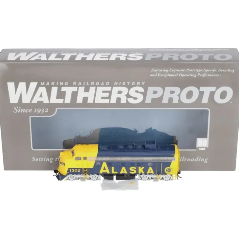 This is a Walthers 920-47711 HO Scale EMD F7A w/48 Dynamic Fan – Standard DC Alaska Railroad #1502 (1982+ Scheme, blue, yellow). Limited Edition – One-Time Run of these Unit Numbers . Based on Units in Service 1982-Retirement with: * Snowplow Pilot * 48 Dynamic Brakes * Rotary Beacon * Single Headlight on A Units * Fire Cracker Radio Antenna * Additional Grab Irons & Ladder Stand-Offs on A & B Units * Modified Fuel Tank Skirts * MU Plug on A Unit Nose * Photo-etched Metal Sunshades & Grilles * Separately Applied Wind Deflectors * Elevated Air Horn * Winterization Hatch. Features: – Great Power for Walthers Alaska Railroad Cars – Authentic Bulldog Nose – 14:1 Gears for Smooth, Quiet Operation – 5-Pole Skew-Wound High-Torque, High-Efficiency Can Motor – Low Speed Under 3 Scale MPH – LED Constant Headlight – Proto MAX Metal Knuckle Couplers.