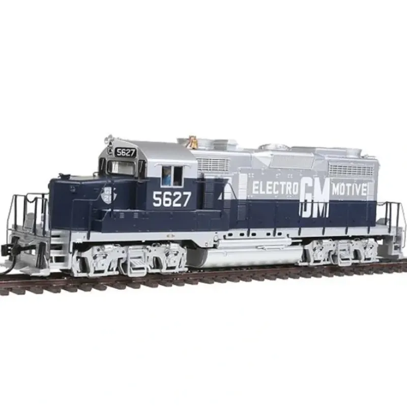 This is a Walthers 920-48562 HO scale EMD GP20 Low Hood – Standard DC – PROTO 2000(R) Electro-Motive Division EMD #5627 (Demonstrator, blue, silver, white) * Road-Specific Detailing * Five-Pole Skew-Wound Armature Motor * 14:1 Gear Ratio for Easy Multiple Unit Operation * Machined Brass Flywheels * All-Wheel Drive * Precisely Meshed Helical Gears for Silent Running * Constant & Directional Headlights * Heavy Die Cast Chassis for Maximum Traction * Proto MAX(TM) Metal Knuckle Couplers * Soundtraxx(R) Tsunami(R) Sound for DCC & DC Layouts By the mid 50s, increasing pressure from long-haul trucks, declining passenger revenues and mounting costs forced western railroads to find new ways to improve service. Faced with expensive overhauls of early cab and hood unit diesels, many began looking at new equipment as well as ways to improve existing motive power. In 1955 Union Pacific equipped several GP9s with turbochargers as an experiment. Their success inspired EMD to create its own turbocharger for the 567 prime mover, leading to the introduction of the six-axle SD24 in 1958. Further experiments in 1959 created a four-axle version, dubbed the GP20. Early in their careers, the new units were typically assigned priority freights that demanded higher speeds. With the arrival of newer power, they were gradually bumped into secondary runs, and eventually spent their last years in local and yard service. Following their retirement, a few went to work for shortline operators. Western Pacific #2001, the very first GP20, was donated by UP to the Feather River Rail Society in 1985, where it has been restored to its as-built appearance. Sound & DCC CB&Q #911 CB&Q #925 EMD #5625 EMD #5628 NS #2008 NS #2009 SSW13 SSW16 Standard DC CB&Q #905 CB&Q #931 EMD #5626 EMD #5627 NS #2008 NS #2009 SSW12 SSW15 Detailed to match demonstrator units in service from about 1960-62 with: * Dynamic Brakes * Flared-Top 48 Front & Rear Radiator Fans * Winterization Hatch * Cab-Mounted Headlights * Cab-Mounted Bell * Leslie S-3L Horn * Roller Bearing Truck Journals