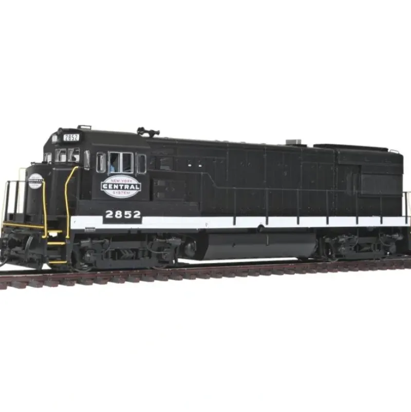 This is Walthers 48660 GE U28B U30B STD NYC#2852. WalthersProto GE U30B, standard DC. New York Central #2852 (black, white). By the 1950s, railroads were shopping for more powerful units to replace earlier diesels, and a horsepower race between EMD, ALCO and General Electric began in earnest. GE took a bold step forward, unveiling its brutish new Universal series in 1959. Production began with a 2500-horsepower, four-axle unit, known as the U25B in 1960 and railfans quickly nicknamed them U-boats. The success of the new series soon pushed GE into the number two spot in locomotive sales.