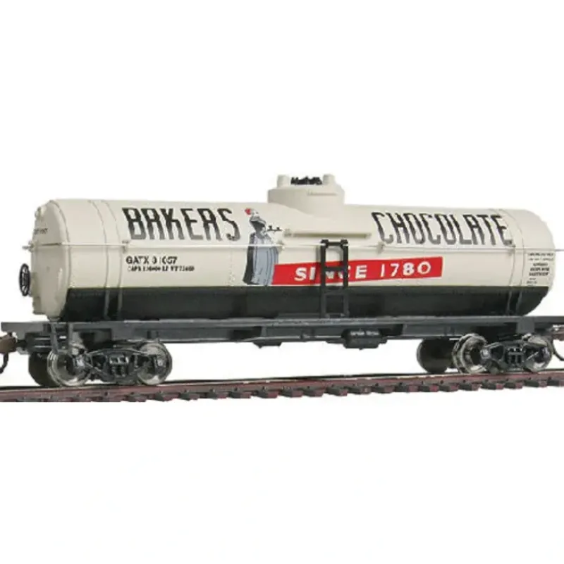 This is a Walthers 931-1615 HO Baker’s Chocolate GATX 40′ Tank Car – Ready to Run #31057. Trainline freight cars feature RP-25 metal wheels for superior performance on all kinds of Code 70 and larger HO Scale track. With their added weight and wheel tread matched to National Model Railroad Association standards, wheels on Trainline cars are perfect for every HO railroad. Other features include molded details that stand up to handling during operation, realistic paint schemes for good looks and body-mounted magnetic knuckle couplers for reliable performance.