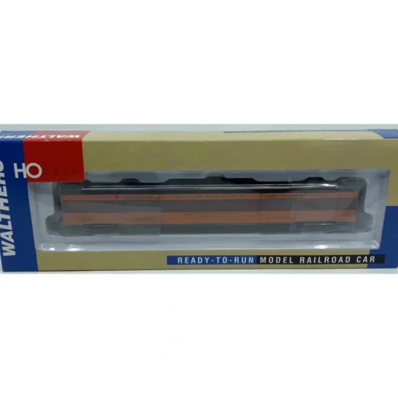 Here is a Walthers 932-9209 HO Milwaukee Road 1955 Hiawatha REA Express Car. Features include plastic trucks, knuckle couplers, and metal wheels and axles. It measures approximately 12 inches in length and requires a minimum radius of 24″ curves.