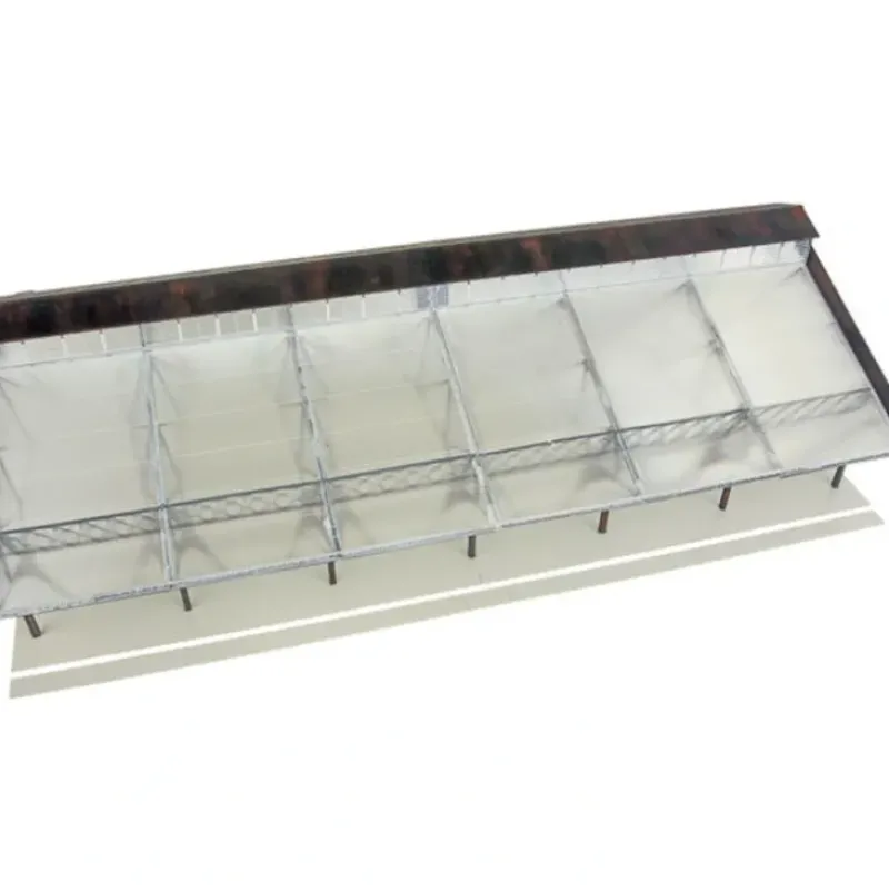 This is a Walthers 933-2984 HO Train Shed with Clear Roof Building Kit. Add the realistic Walthers Cornerstone Train Shed with Clear Roof to any large HO Scale station scene! This easy-to-build model is based on the Milwaukee Road’s structure in Milwaukee, Wisconsin, but several other railroads used train sheds that were extremely similar, so it will look at home on any steam or streamliner-era layout. This kit features a translucent roof molded in clear plastic so you can see what’s under the canopy or you can paint it to leave skylight panels as used on several station sheds. Each kit includes 22-3/8 of train shed in two sections. Kits can be easily combined for a larger shed. As shown the Train Shed measures: Shed: 22-3/8 x 11-9/16 x 6-1/4 56.8 x 29.3 x 15.8cm; Shed Track Centers: 2-3/4, 2, 2-3/4, 2, 2-3/4 6.9, 5, 6.9, 5, 6.9cm